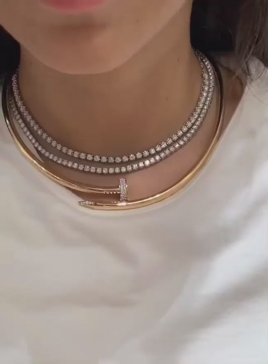 Natural Diamond Tennis Necklace / Choker Adjustable